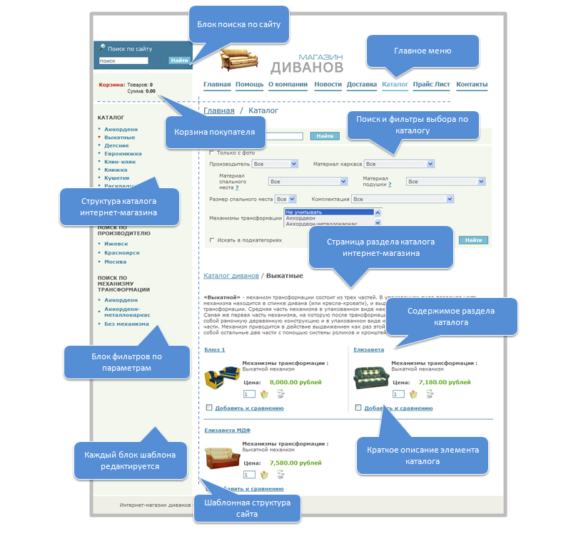 Экранные снимки (скриншоты) Amiro.CMS пакет «Минимаркет» 5.2.4