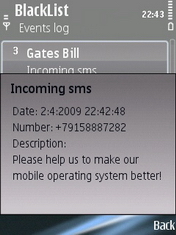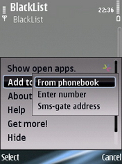Экранные снимки (скриншоты) BlackList Mobile для S60 5th edition 1.9