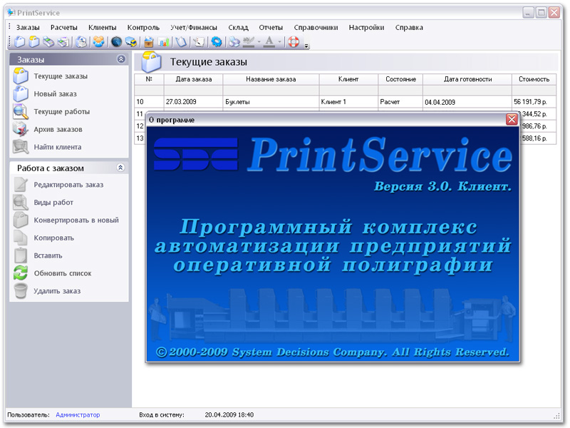 Экранные снимки (скриншоты) PrintService 3.0. Lite