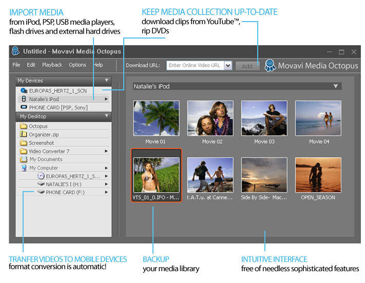 Экранные снимки (скриншоты) Movavi Media Octopus Английская версия